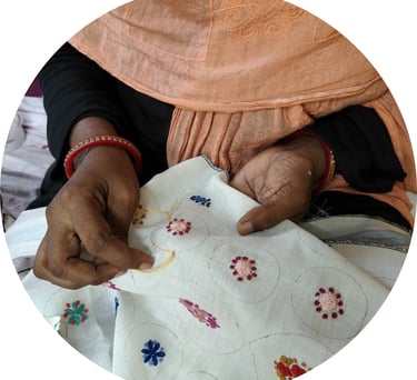 Sutanuti Studio was born from a love for hand-stitched artistry and a vision to turn blank canvases into vibrant expressions of creativity. Along the way, we discovered that the true beauty of our craft lies in the hands and hearts of the artisans who bring it to life. Partnering with village artisans became the cornerstone of our journey—a collaboration built on shared dreams and mutual growth. With their skillful hands, unwavering spirit, and rich cultural heritage, they infuse each piece with a soul no machine could replicate. At Sutanuti Studio, we celebrate their artistry, provide a platform for their talent, and together, create designs that tell a story of resilience, tradition, and hope.