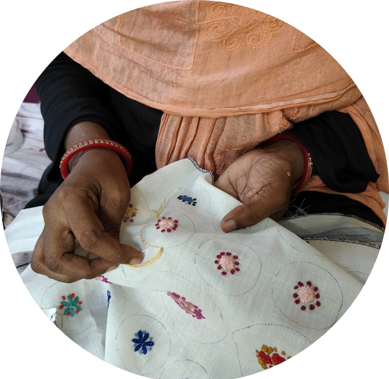 Sutanuti Studio began a journey fueled by a passion for hand-stitched beauty, a desire to transform a blank canvas into vibrant expressions of the soul. But soon, we realized that true beauty lies not just in intricate stitches, but in the hearts that weave them. When we finally connected, it was a symphony of shared dreams. Their eager eyes, nimble fingers, and unwavering spirit became the foundation upon which SUTANUTI STUDIO was built. We nurtured their talent, provided a platform, and breathed life into our designs. Their stories whispered in every stitch, added a depth and richness no machine could replicate.